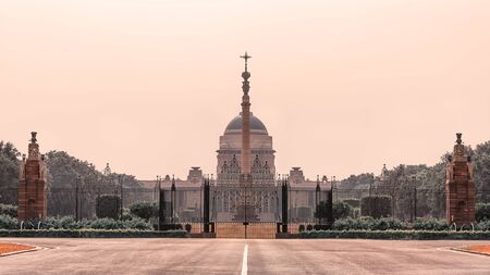 NEW DELHI, INDIA, MARCH, 2019: Sunset view from Rajpath 'King's Way' in Delhi near Rashtrapati Bhavan on Raisina Hill.