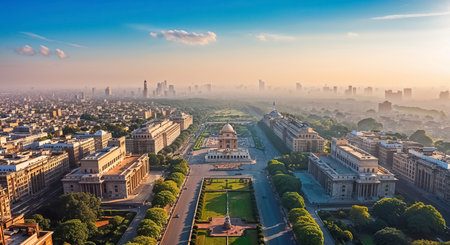 Stunning panorama of New Delhi the capital of India, sunny day