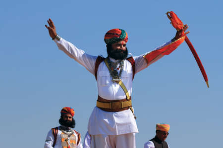 JAISALMER, INDIA - FEB 01,2015- A traditional Rajasthani man participates in the Mr. Desert contest conducted as part of Desert Festival held in Jaisalmer, Rajasthan, India.