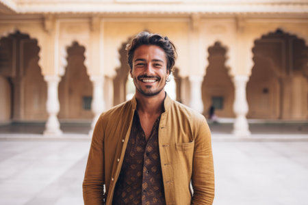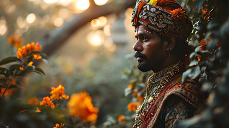 Generative AI Image of Indian Man Prince Wearing Traditional Clothes in Palace