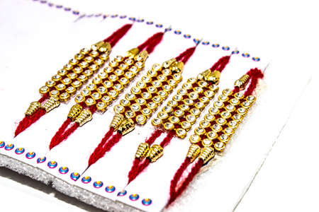 Indian festival Raksha Bandhan , Decorative Rakhi on white background
