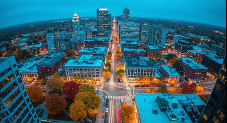 Aerial view of downtown Charlotte, North Carolina during fall season.