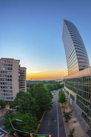 ROSSLYN, WASHINGTON DC, USA - SEPTEMBER 6, 2018: View at morning light of Rosslyn skyscrapers. Rosslyn is the Business Improvement District connected to Washington DC.