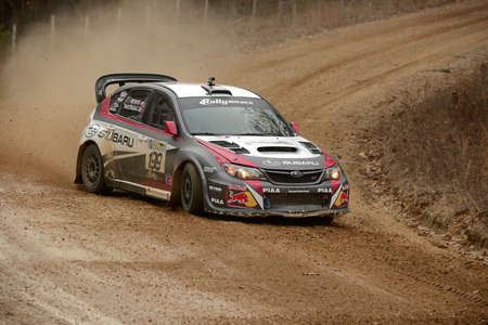 ALMATY, KAZAKHSTAN - APRIL 9: Kazanovsky and Li (2) in action at auto competition Rally Borly April 9, 2011 in Almaty, Kazakhstan.