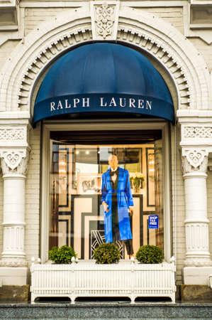 Russia, Moscow, October 10, 2019: RALPH LAUREN logo on the shop window