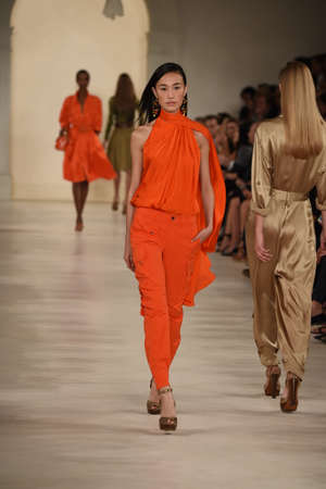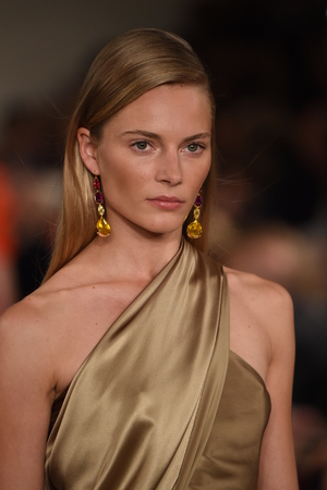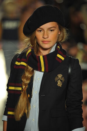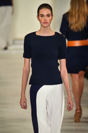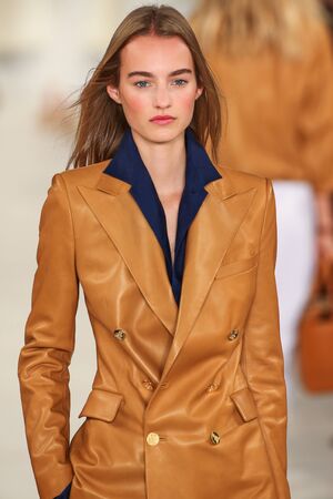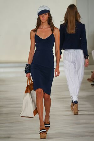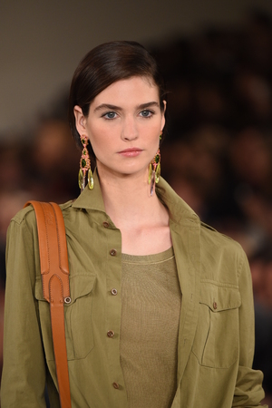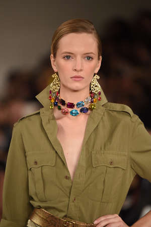 NEW YORK, NY - SEPTEMBER 11: A model walks the runway at Ralph Lauren fashion show during Mercedes-Benz Fashion Week Spring 2015 on September 11, 2014 in New York City.