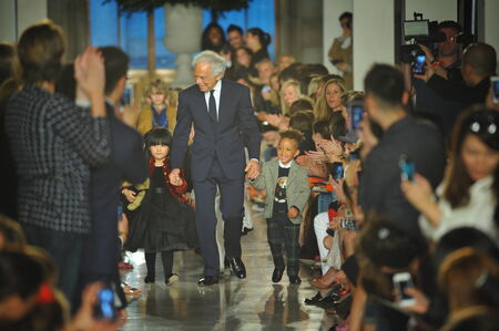 NEW YORK, NY - MAY 19: Designer Ralph Lauren and kids walk the runway at the Ralph Lauren Fall 14 Children's Fashion Show in Support of Literacy at New York Public Library on May 19, 2014 in NYC.