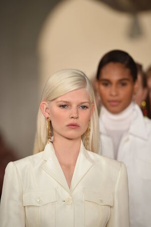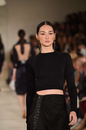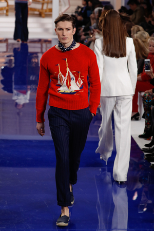NEW YORK, NY - FEBRUARY 12: A model walks the runway at Ralph Lauren Spring/Summer 18 fashion show during the New York Fashion Week on February 12, 2018 in New York City.