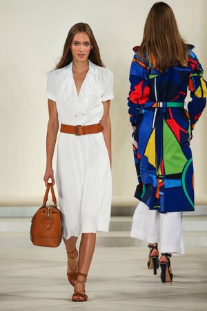 NEW YORK, NY - SEPTEMBER 17: A model walks the runway wearing Ralph Lauren Spring 2016 during New York Fashion Week: The Shows at Skylight Clarkson Sq on September 17, 2015 in New York City.