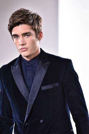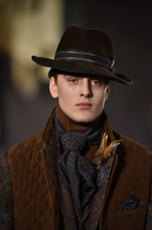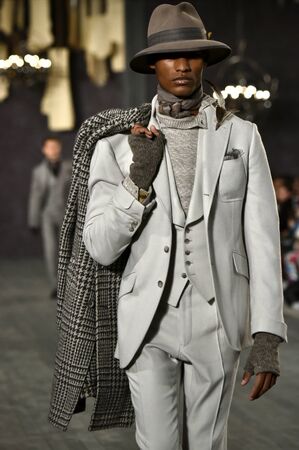 NEW YORK, NY - FEBRUARY 03: A model poses wearing Nick Graham during New York Fashion Week Men's Fall/Winter 2016 on February 3, 2016 in NYC.