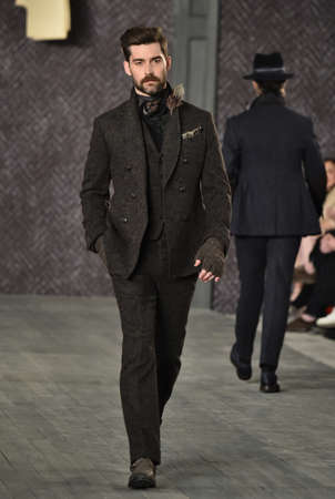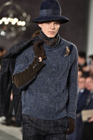 NEW YORK, NY - FEBRUARY 03: A model walks the runway at the Billy Reid fashion show during New York Fashion Week Men's Fall/Winter 2016 on February 3, 2016 in NYC.