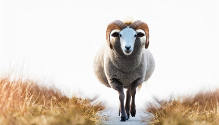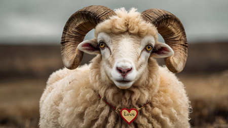 A picture of a sheep with beautiful horns in Croatia at Easter. Generative AI