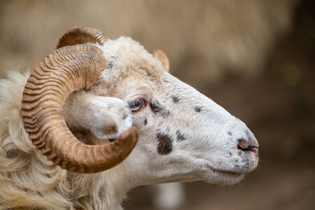 Portrait of a mouflon - Male mouflon with magnificent horn