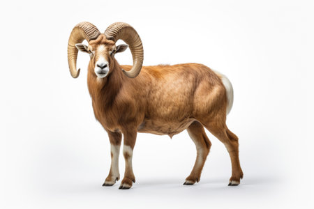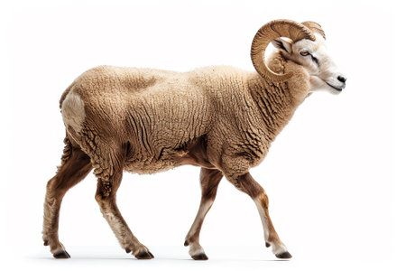A ram is walking on a white background