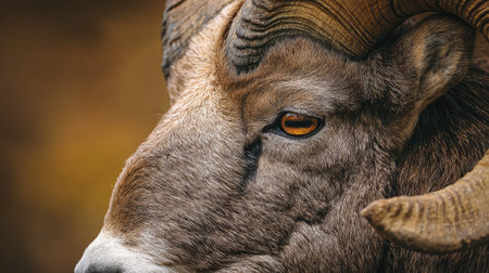 Discover a stunning portrait of a majestic ram, showcasing its intricate textures and striking gold background. This powerful animal captures the essence of wildlife and nature.