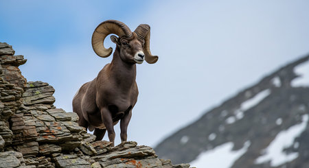 Majestic Ram with Curled Horns in Natural Habitat