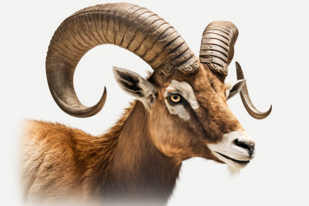 Mouflon isolated on a white background. Close-up.
