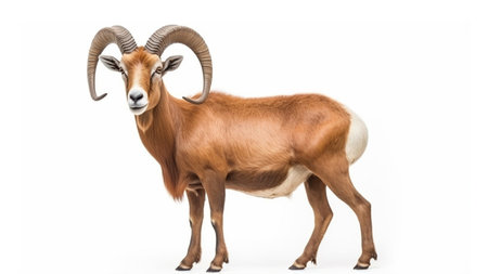 Mouflon isolated on a white background. 3d rendering.