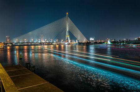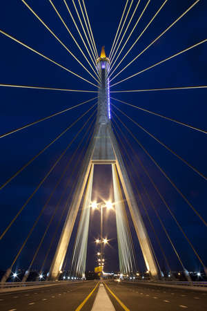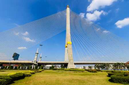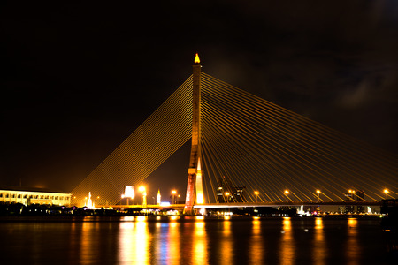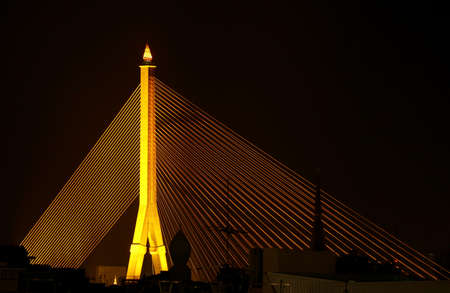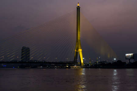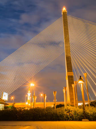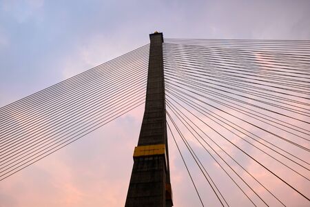 Rama VIII bridge is one of the most beautiful bridge in Bangkok city, Thailand. The structure is used of wire rope hanging at the tip of the column of the bridge, engineering.