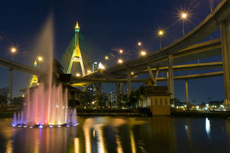 Rama 8 mega bridge at night time in Thailand