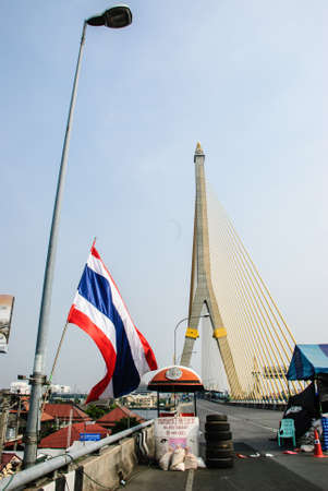 Bangkok, Thailand – Jan 23 Thai anti-government protesters camp on the Rama 8 bridge on Jan 23, 2014 Bangkok, Thailand Rallies against a proposed amnesty for most political offenses stretching back to a 2006 coup that toppled Yingluck’s brother, Tha