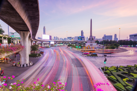 BANGKOK, THAILAND - 16 February 2013v: Victory monument the central traffic communication and beautiful landmark in Bangkok at night time