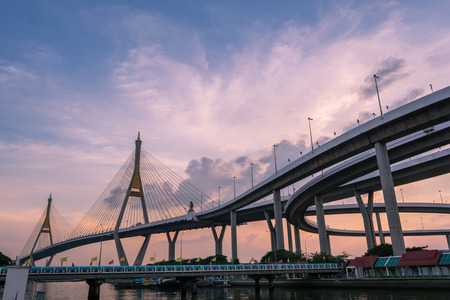 Bhumibol highway Bridge Twilight under view.