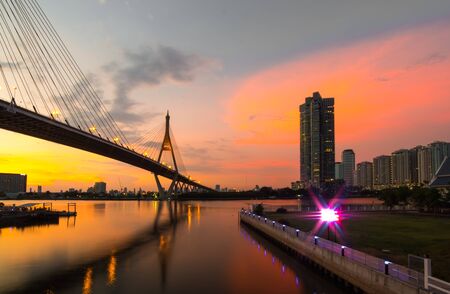 Bangkok City - Beautiful sunset view of Bhumibol Bridge,Thailand
