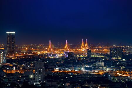 Bangkok city - cityscape Rama8 bridge at night , landscape bangkok Thailand