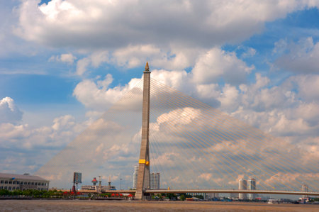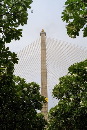 Suspension bridge named Rama IX crossing Chaophraya river in Bangkok