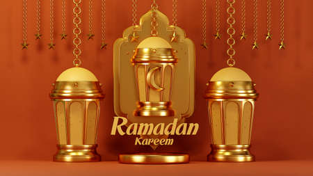 3D rendering Ramadan Kareem Lanterns, lamps gold color, religion Islamic, happy eid mubarak concept illustration backgrounds