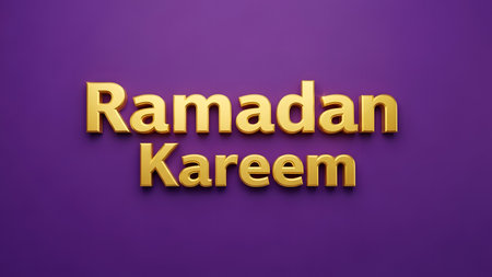 Ramadan Kareem Text on Purple Background. 3D Render.
