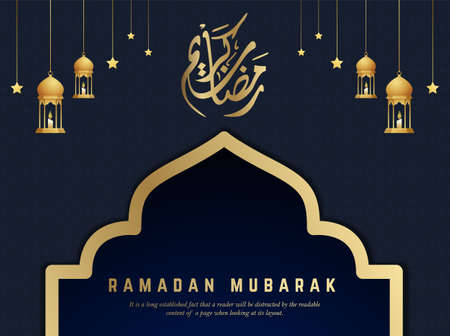 Ramadan Kareem design on Islamic background with gold pattern on paper color background