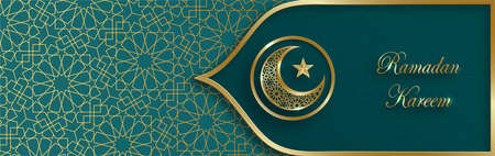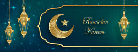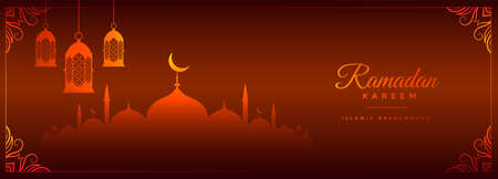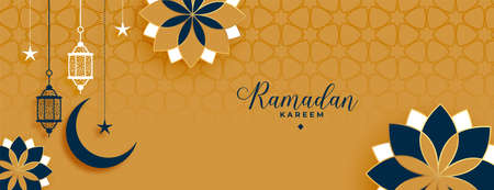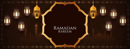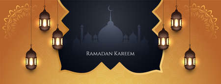 Islamic Ramadan Kareem festival banner with decorative lanterns vector