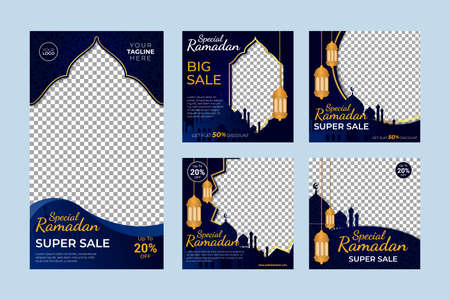 A Ramadan card surrounded by glowing lanterns, golden stars, and elegant decorations, creating a warm and festive ambiance