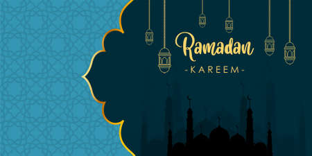 ramadan background with mosque silhouettes and lanterns good for banners, backdrops, web etc