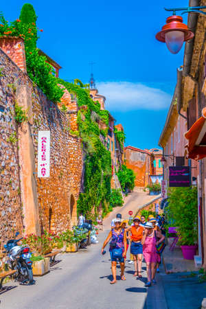 ROUSSILLON, FRANCE, JUNE 23, 2017: A narrow street in Roussillon village in France