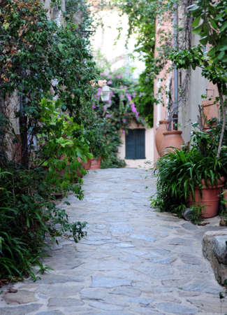 Cozy Narrow Alley Decorated With Plants In Ramatuelle France On A Beautiful Autumn Day