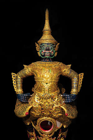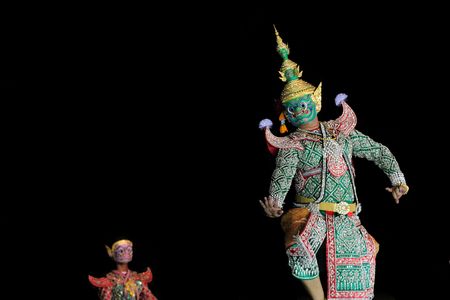 asian and Thailand traditional performance drama call ramayana in giant and monkey suite on black isolate background