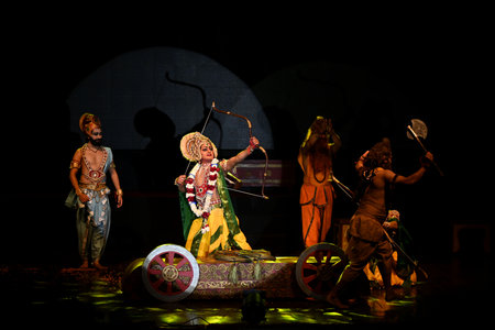 NEW DELHI, INDIA – JANUARY 21: Artists performing during Shree Ram ‘Ramlila Manchan’ by Hindi Academy (Government of Delhi) at Pearey Lal Bhawan ITO, ahead of consecration of Ram temple at Ayodhya, on January 21, 2024 in New Delhi, India. (Photo by