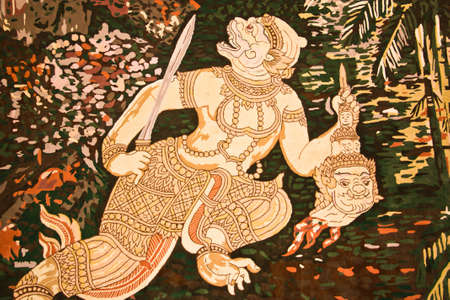 ravana painting is story about Ramayana on the temple wall of wat pho.