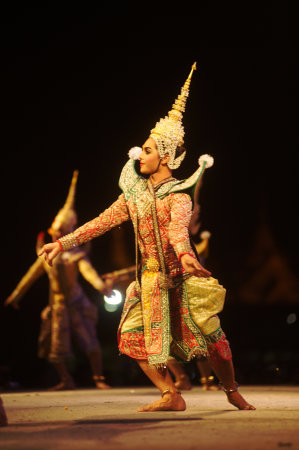 BANGKOK, THAILAND - JANUARY 15: actors performs Thai ancient dancing Art ,Khon Thai Classical masked ballet, January 15, 2012 at Wat bowonivet annual festival ,bangkok thailand