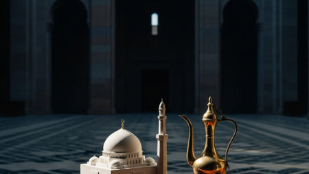 Ramadan Kareem. Ramadan Kareem lantern with dates and glass of water in the mosque