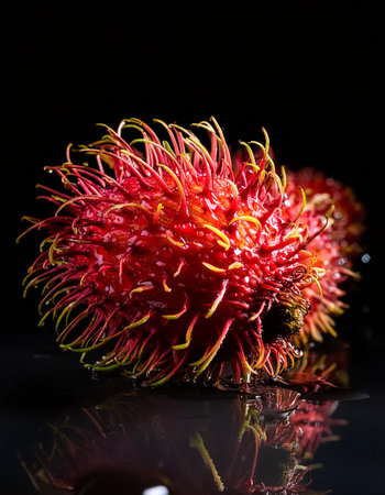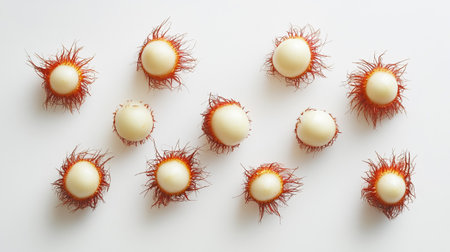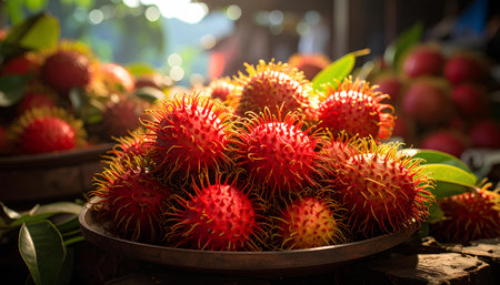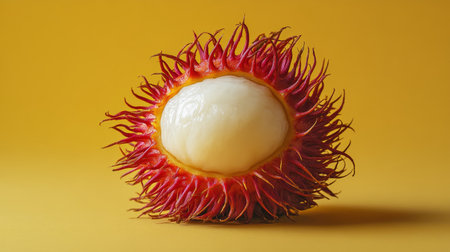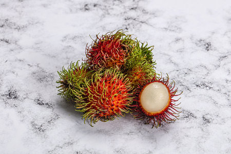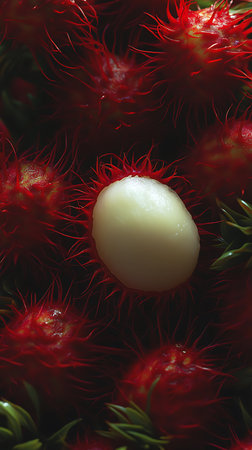 Vibrant Rambutan Fruit Display, Hairy Red Shell with Juicy White Flesh, Nutrient Rich Fruit