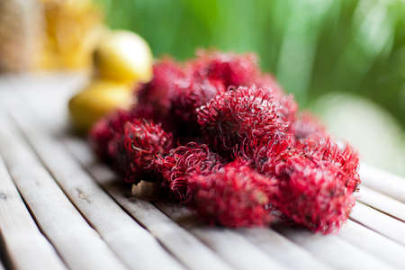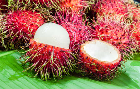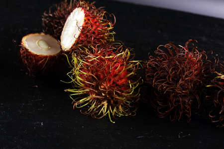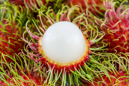 Fresh and ripe rambutan fruits, selective focus image. Close up.
