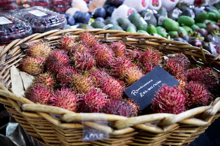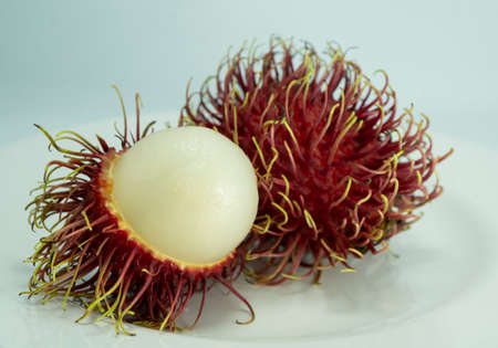 rambutan fruit Asia meets in the Thai market and Malaysia on a plate standing on a white background