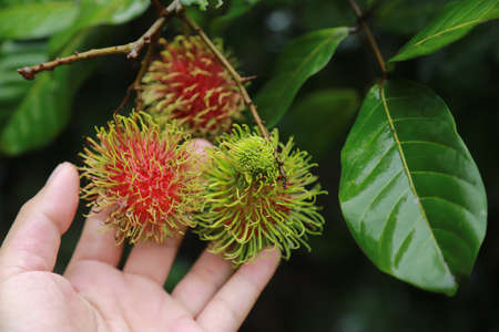 Farmers are harvesting products in rambutan farms.Rambutan in the garden, Rambutan on hand.
