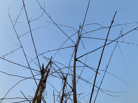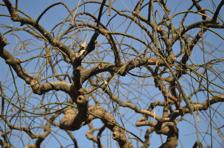 Unusual branches of a dry dry deciduous tree against a bright blue sky