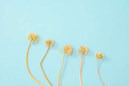 Close up blossoming branch of fennel on light green background.Selective focus depth of field.