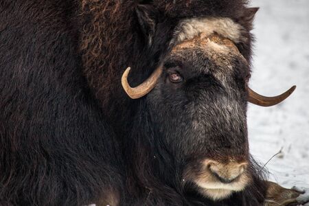 Close-up Portrait of Muskox or Ovibos moschatus.